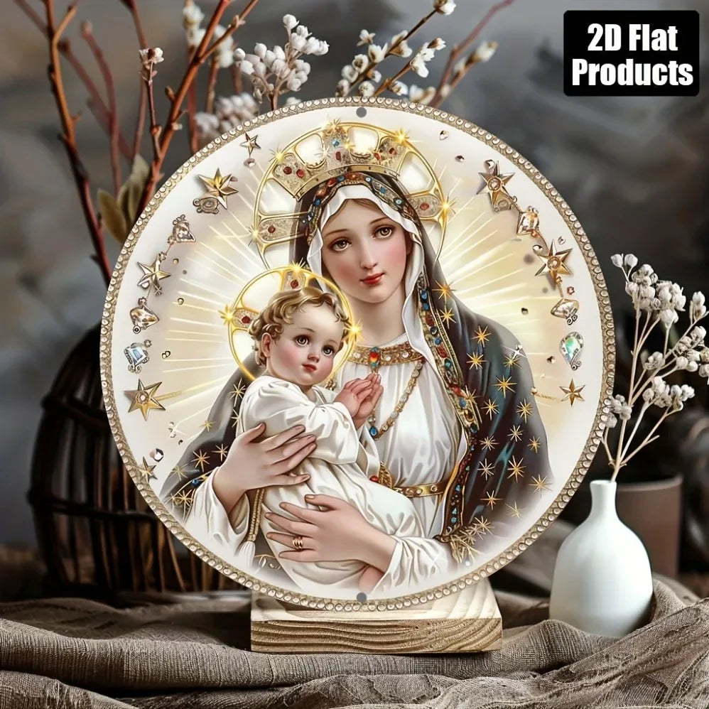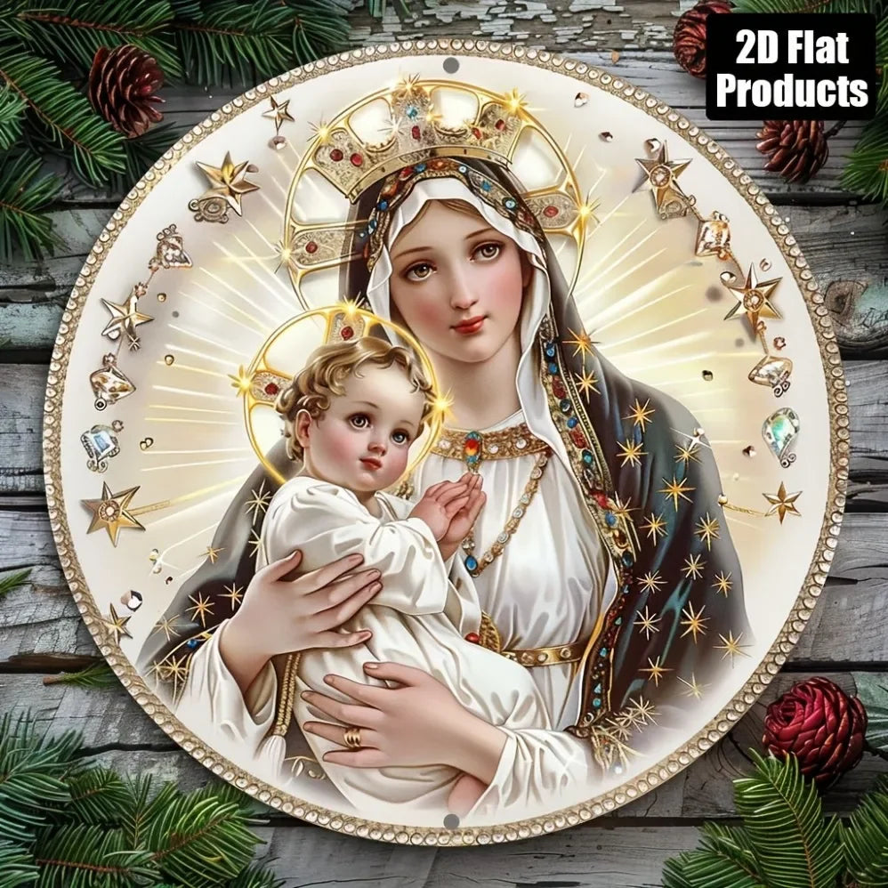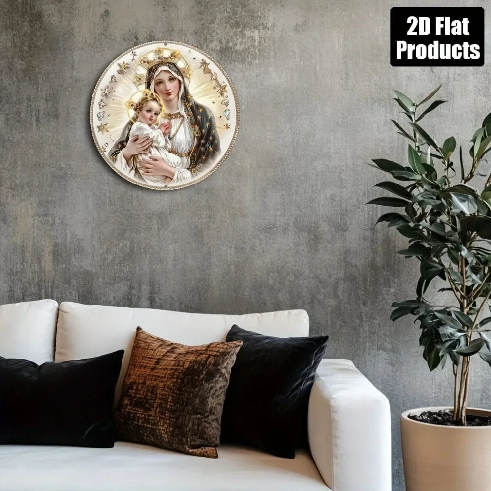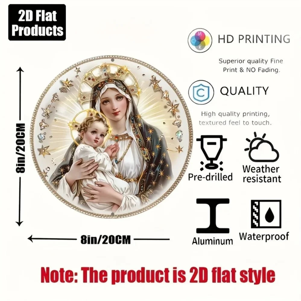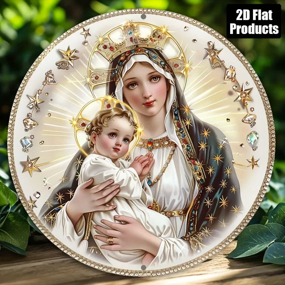 1pc Virgin Mary Themed 2D Flat Aluminum Wall Art – Round Vintage Metal Sign (2D Flat Print), Perfect for Bar/Kitchen/Home/Living