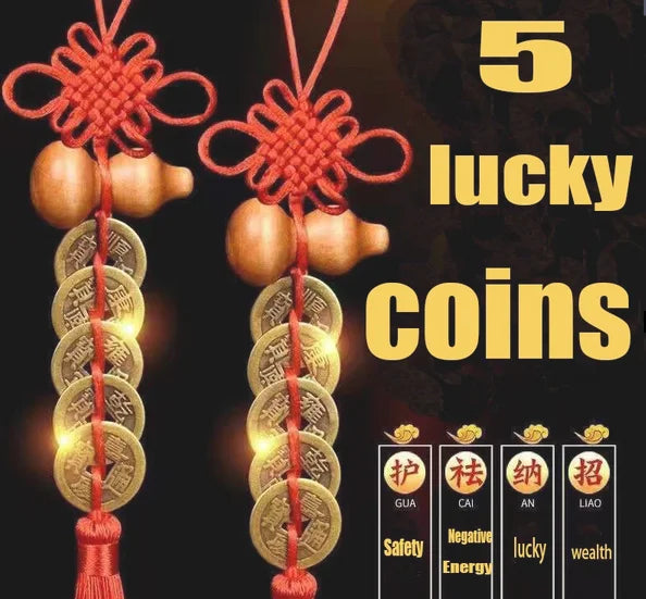 1PCS Feng Shui Decoration Five Emperors Money East And Northwest Home Decor Authentic Gourd Pendant Town House Talisman Coin