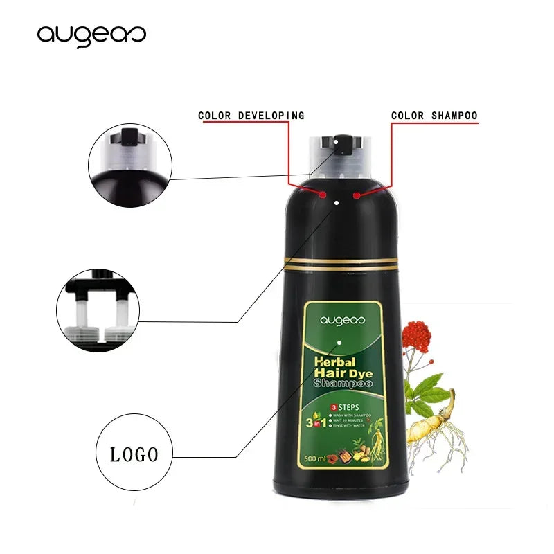 Magic black hair shampoo packed with 500ml plastic bottle ,easy for daily family using.Develop the traditional technology of natural black hair color dye,pure noni herbal essence help to improve the chemical ingredients damaged to the hair and skin.