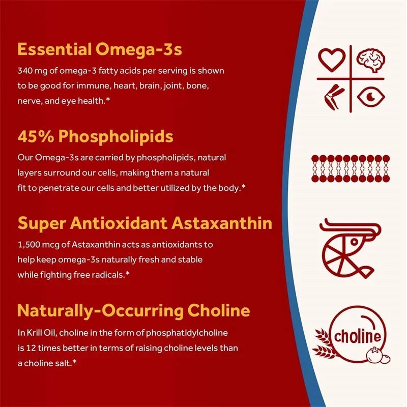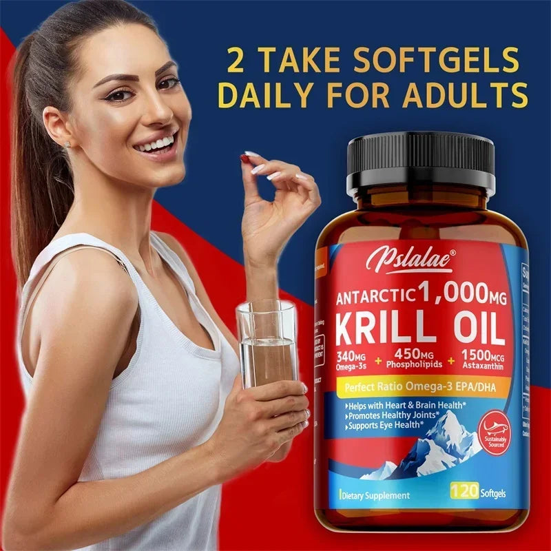 Antarctic Krill Oil Astaxanthin Capsules(EPA, DHA) - Supports Heart and Brain Health, Joint & Muscle Health, Natural Antioxidant