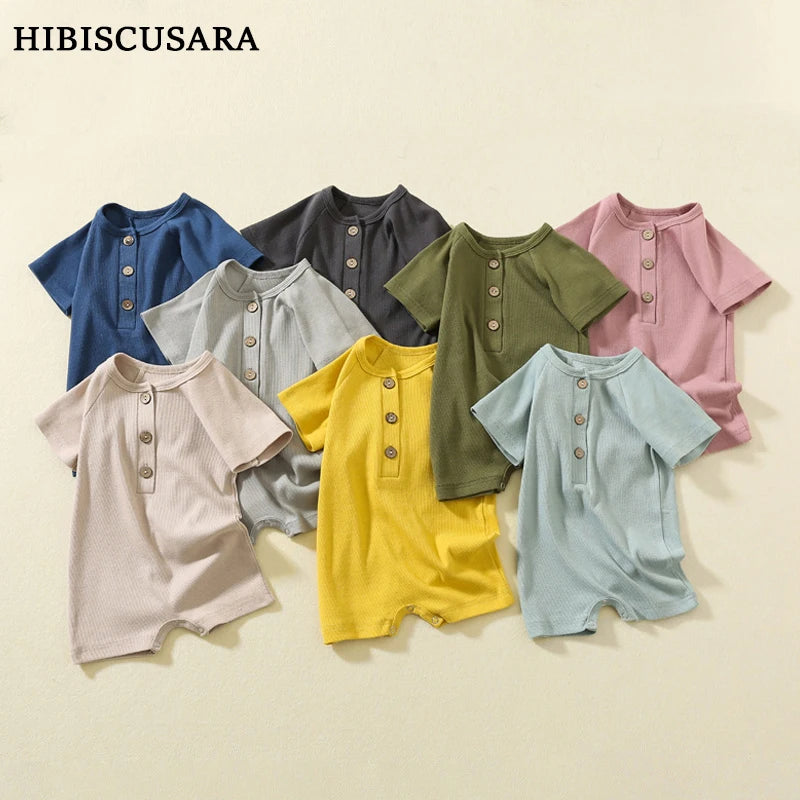 Baby Boy Romper Summer Wear Infant Bebe Thin Pajamas Short Sleeve Jumpsuit Ribbed Clothes Knitted Stretch Girl Outfits Playsuit