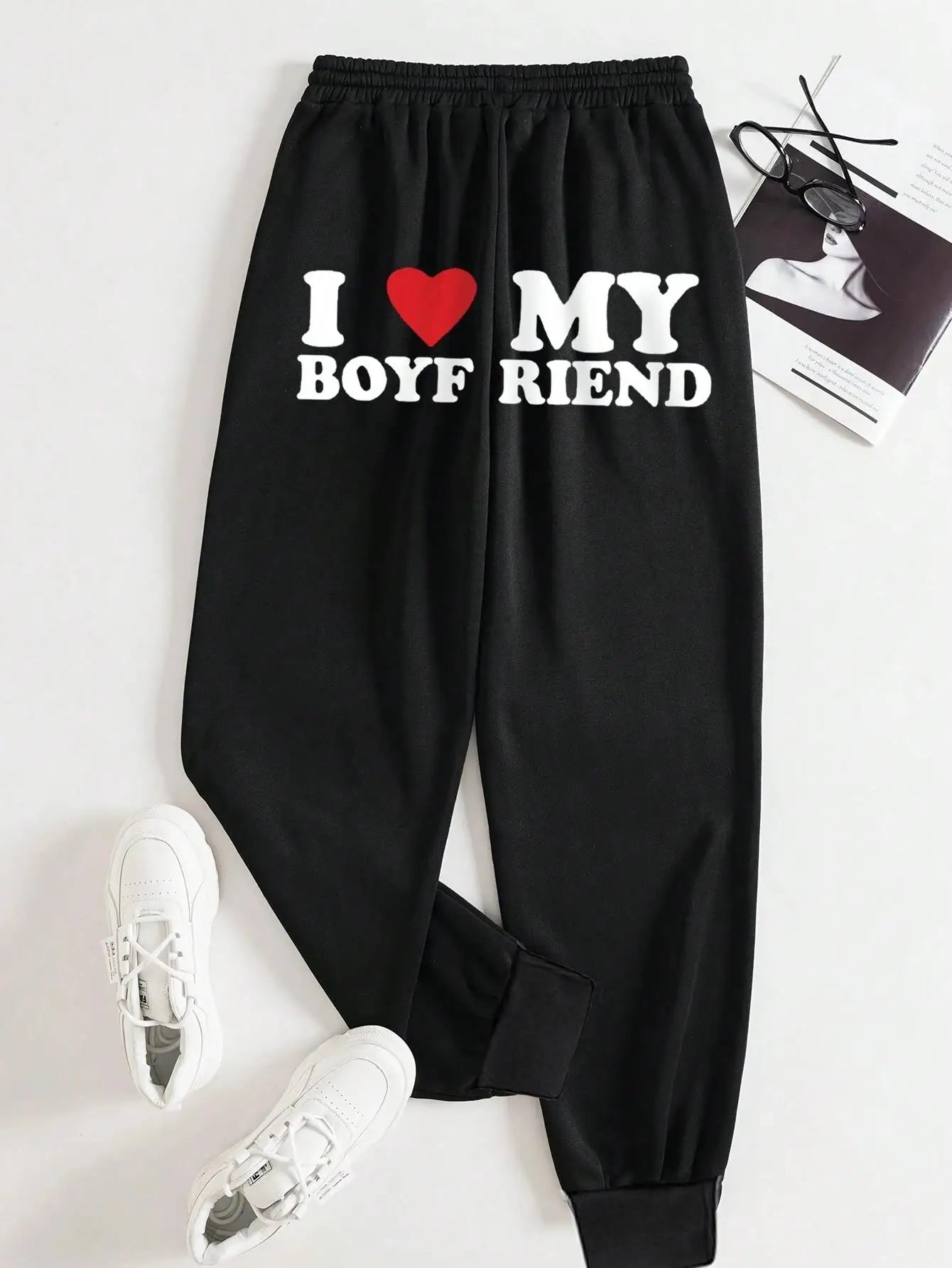 I Love My Boyfriend Letter Prints Women's Elastic Waist Pants Loose Drawstring Long Pant Fashion Casual Female Sports Sweatpants