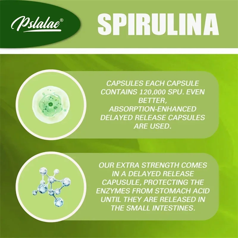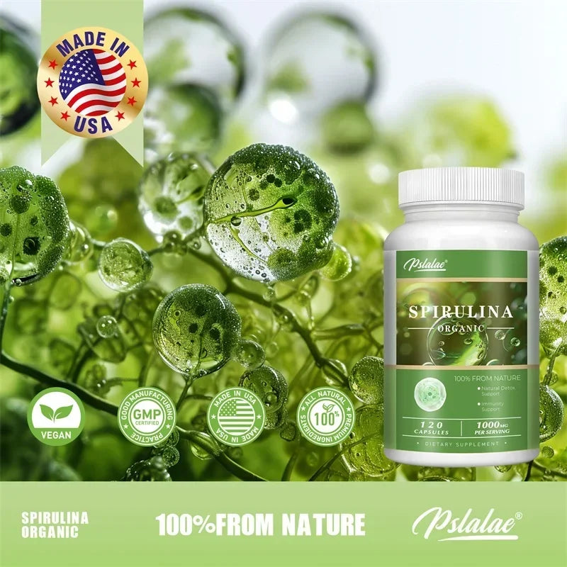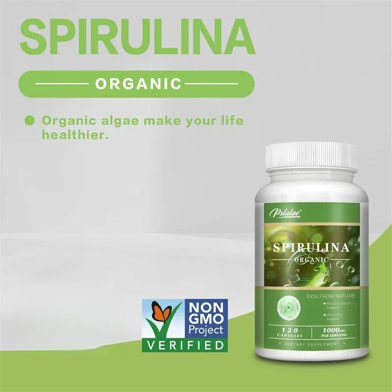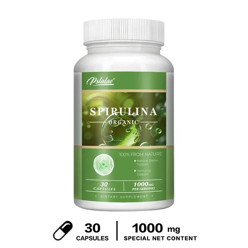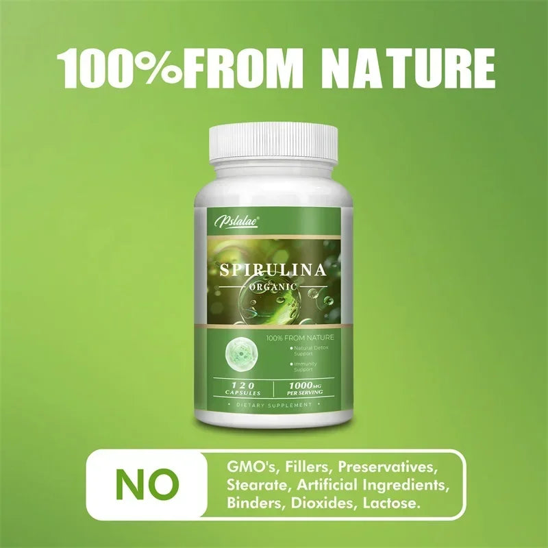 Organic Spirulina Capsules - Green Superfood - Heart Support, Cardiovascular, Eye & Brain Health