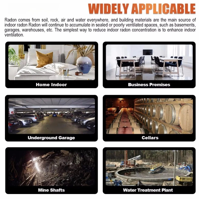 Radon comes from soil, rock, air and water everywhere and building materials are the main source of indoor radon. Radon will continue to accumulate in sealed or poorly ventilated spaces, such as basements, garages, warehouses, etc. The simplest way to reduce indoor radon concentration is to enhance indoor ventilation.