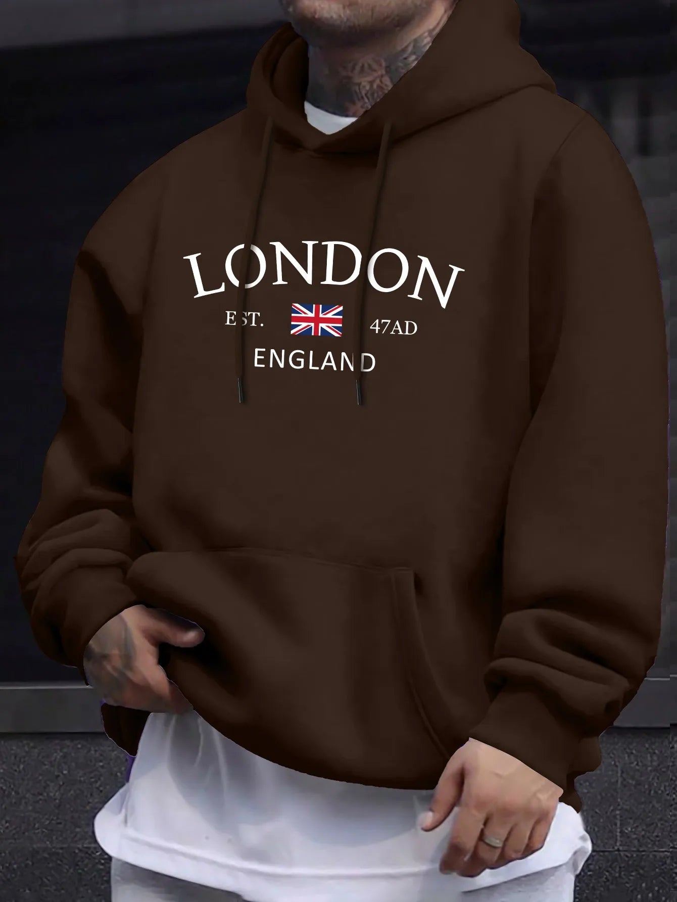 Stylish London England Flag Print Hoodie - Fashion Hoodies for Men with Long Sleeve Comfortable Regular Fit